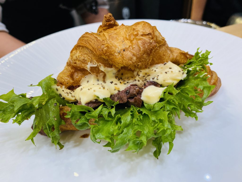 オーブンの使い方を確認し、クロワッサンサンドを仕上げます。