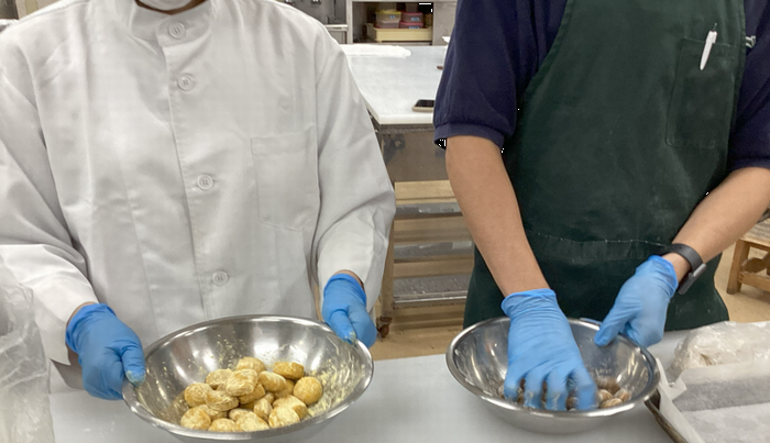 【技術指導2回目(9月上旬実施):アイスボックスクッキー】の技術指導の様子