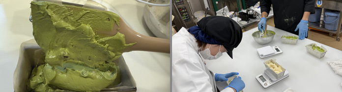 バターに空気が入り色が変わる様子や混ぜるタイミングなど、細かい部分に注意しながら作成していきました。