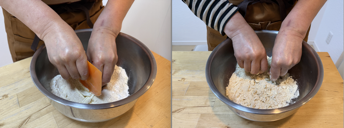 次に、トッピングに映えるクランブルクッキーの作成です。