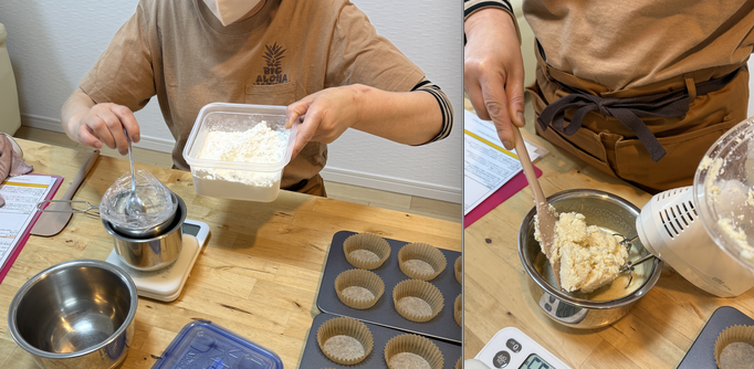 今回は期間を開けず、4月~5月の1か月の中で3回(終日)集中レッスンで、おからマフィンをご習得いただきました。