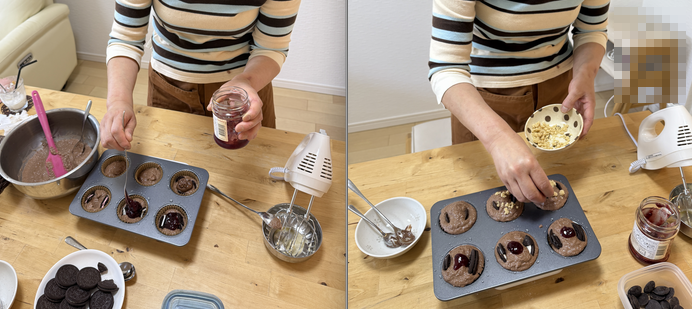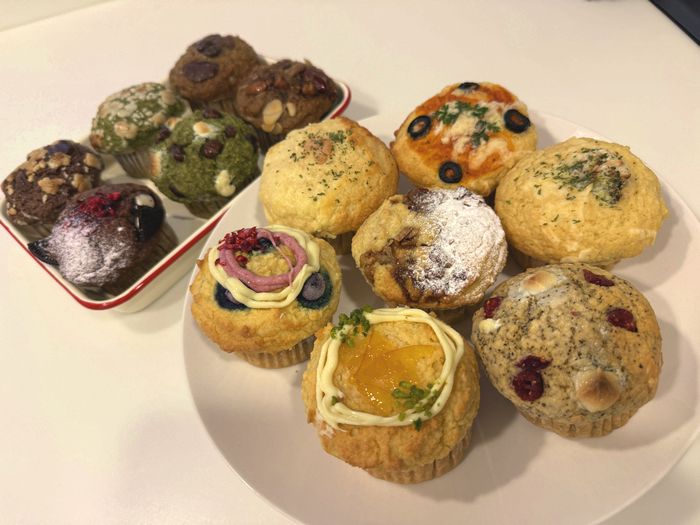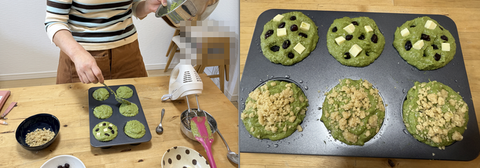 今回はベースの生地を3種類作り、それぞれの生地に合う各2種のトッピングで6種のスイーツ系おからマフィンを作っていきます。