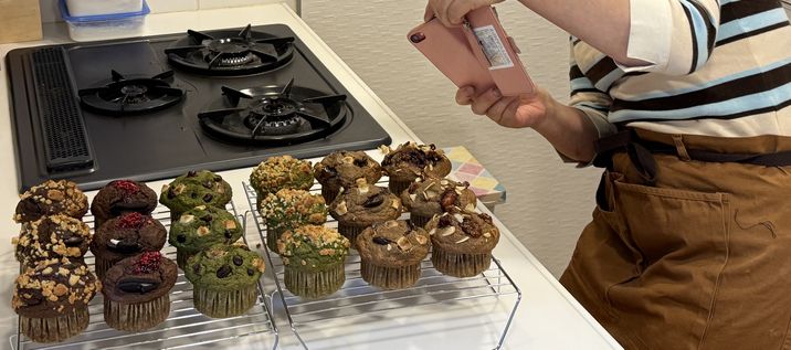 「お店みたい!!嬉しいです♪」と喜ばれ、マフィンを撮影するO様( *´艸`)