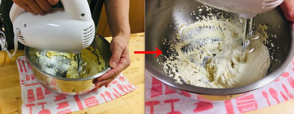 バターが空気を含むと白っぽくふわふわの質感に変わります。